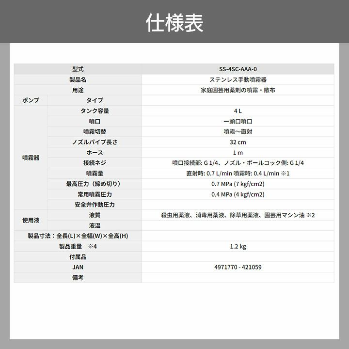 他の画像を見る 手動 肩掛け式 噴霧器 半自動噴霧器 肩掛式 噴霧器 工進 SS-4SC 4L 1段ノズル Mネジ KOSHIN コーシン 噴霧 防除 除草 価格 ¥ 7,692 税込 詳細を見る お気に入りに登録する (0)
