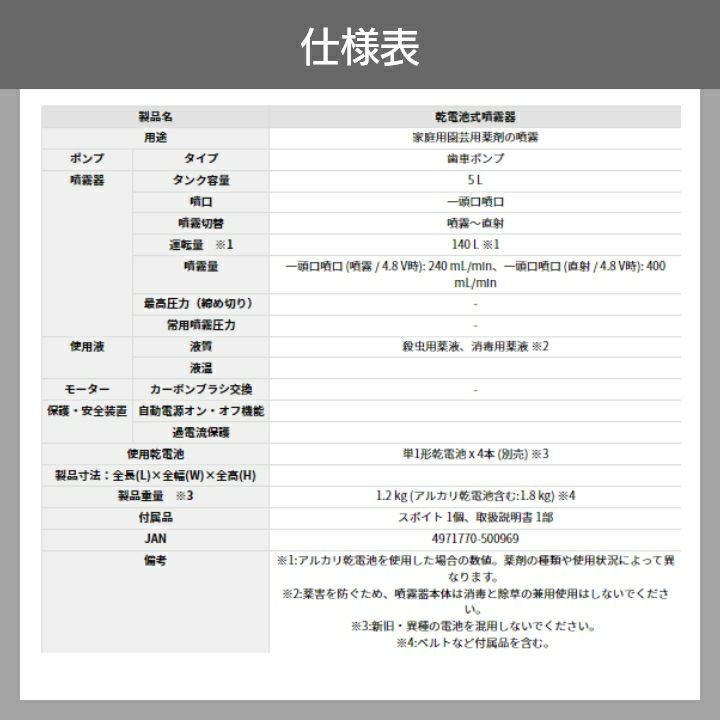 他の画像を見る 電動噴霧器 乾電池 肩掛け式 電動噴霧器 噴霧器 工進 乾電池 GT-2D ガーデンマスター 肩掛け式 2L 噴霧 防除 除草 価格 ¥ 5,040 税込 詳細を見る お気に入りに登録する (0)