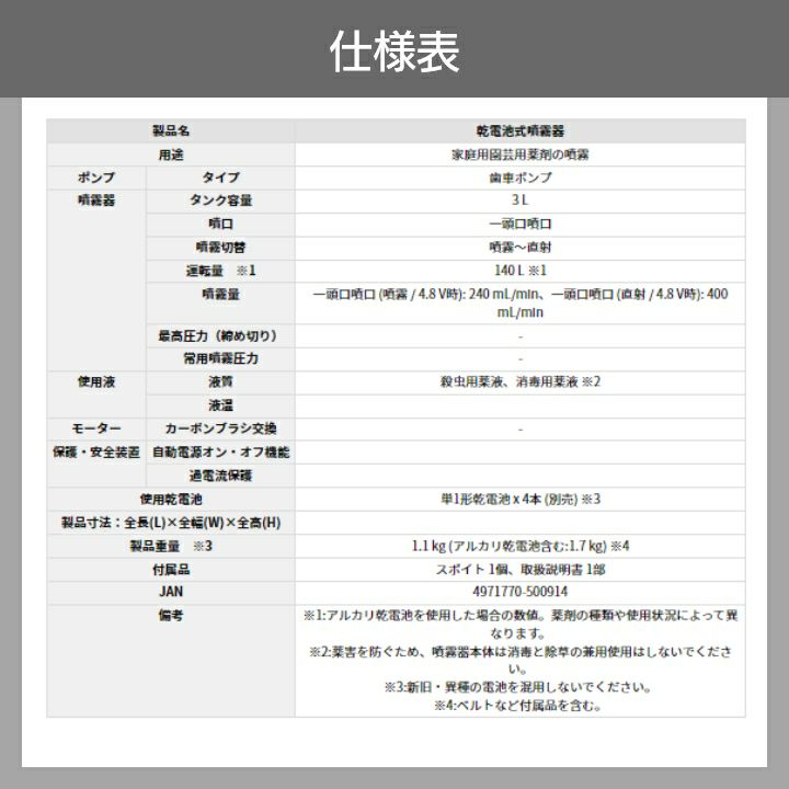 他の画像を見る 電動噴霧器 乾電池 肩掛け式 電動噴霧器 噴霧器 工進 乾電池 GT-3HD ガーデンマスター 肩掛け式 3L 噴霧 防除 除草 価格 ¥ 7,360 税込 詳細を見る お気に入りに登録する (0)