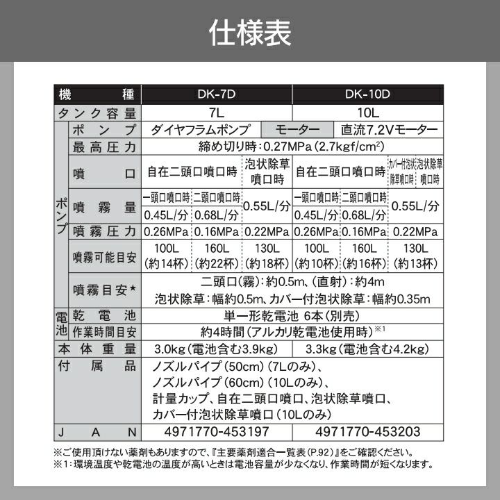他の画像を見る 電動噴霧器 乾電池 背負い式 電動噴霧器 噴霧器 工進 乾電池 DK-10D 背負い式 最高圧力0.27MPa 消毒 除草剤 ダイヤフラム 10Lタンク 噴霧 防除 除草 価格 ¥ 16,800 税込 消毒・除草で乾電池式噴霧器なら女性やお年寄りでも作業らくらく 詳細を見る お気に入りに登録する (0)