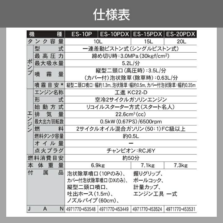 他の画像を見る エンジン 動噴 背負い式 エンジン 噴霧器 工進 動噴 ES-15PDX + ノズルセット 045183901 セット商品 背負い式 噴霧 防除 除草 価格 ¥ 53,800 税込 詳細を見る お気に入りに登録する (0)