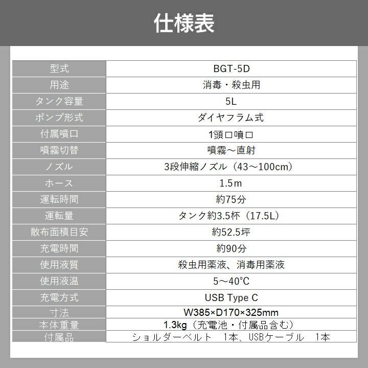 他の画像を見る バッテリー式 噴霧器 肩掛け式 小型 軽量 工進 バッテリー式 噴霧器 BGT-5DR 小型 5L 除草向け 除草 噴霧機 KOSHIN 価格 ¥ 8,800 税込 詳細を見る お気に入りに登録する (0)