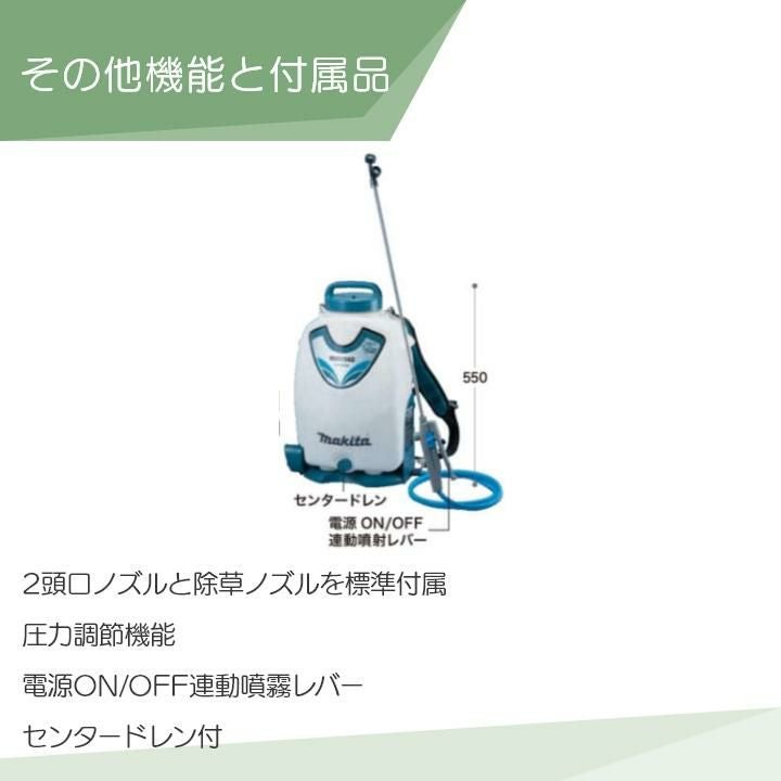 他の画像を見る 充電式噴霧器 電動噴霧器 バッテリー 背負い式 マキタ 電動噴霧器 充電式噴霧器 噴霧器 MUS155DWH バッテリー 背負い式 18V バッテリ・充電器付 15Lタンク 噴霧 防除 除草 価格 ¥ 56,210 税込 在庫切れ 再入荷お知らせ お気に入りに登録する (0)