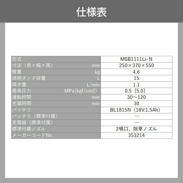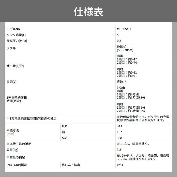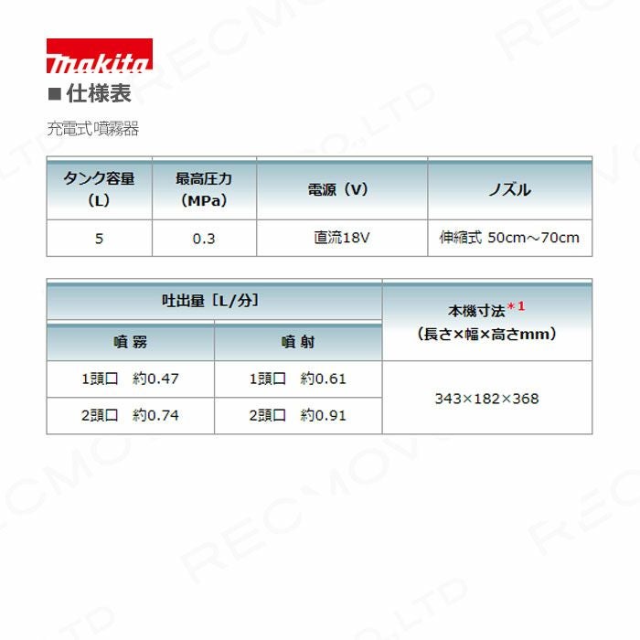 他の画像を見る 充電式噴霧器 電動噴霧器 バッテリー 肩掛け式 マキタ 電動噴霧器 充電式噴霧器 噴霧器 MUS054DZ バッテリー 肩掛け式 18V 本体のみ バッテリー・充電器別売 5Lタンク 噴霧 防除 除草 バッテリー別売 価格 ¥ 18,457 税込 詳細を見る お気に入りに登録する (0)