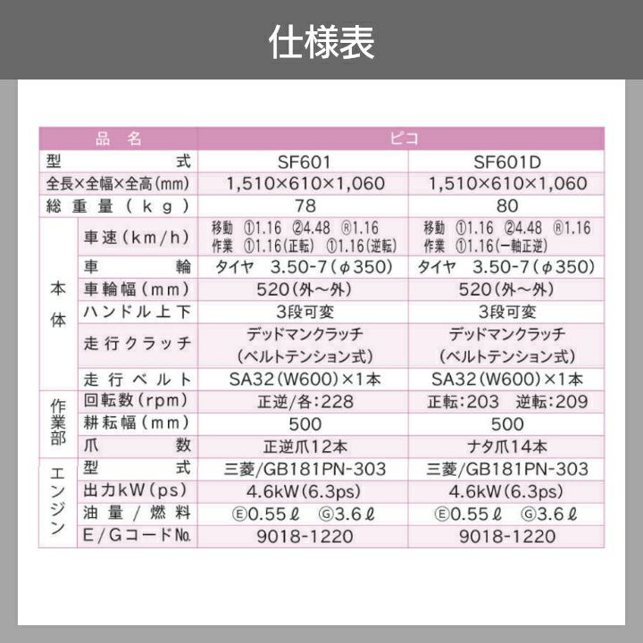 他の画像を見る 営業所止 エンジン式 自走 最大出力4.6 kW 受注生産 納期別途ご案内 オーレック 管理機 SF601 耕運機 エンジン式 管理機 OREC 手押し式 ロータリー回転 馬力6.3ps 価格 ¥ 206,493 税込 在庫切れ 詳細を見る お気に入りに登録する (0)