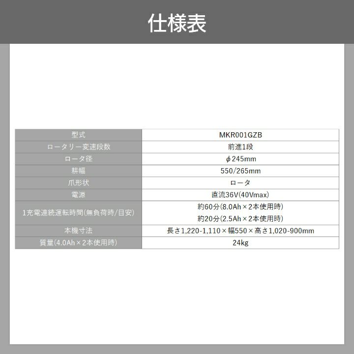 他の画像を見る マキタ 40Vmax 管理機 バッテリー式 マキタ 管理機 MKR001GZ 40Vmax 本体のみ 充電式 管理機 バッテリー・充電器別売 家庭用 家庭菜園 小型 耕うん機 耕運機 価格 ¥ 122,404 税込 詳細を見る お気に入りに登録する (0)