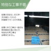 設置目安は450坪・天井高8~12mの貯蔵庫で15~20台程度。設置に伴う工事は、一般的な照明器具交換と同じで、特別な付帯工事はありません。