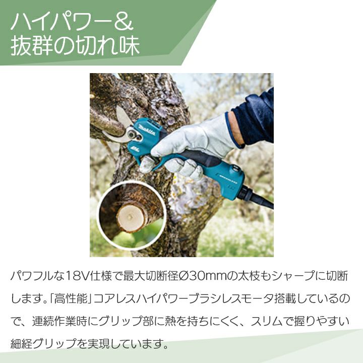 他の画像を見る マキタ 18V 充電式 はさみ UP180DZK マキタ せん定ハサミ 18V 充電式 UP180DZK バッテリー・充電器別売 剪定 選定 はさみ 鋏 makita 価格 ¥ 83,056 税込 詳細を見る お気に入りに登録する (0)