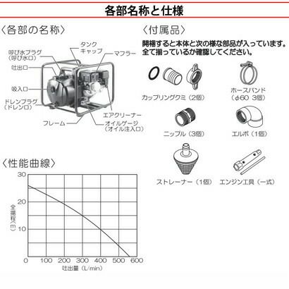 他の画像を見る 工進 サビに強い 潅水 KOSHIN 入荷未定 工進 高性能樹脂製 エンジンポンプ PGH-50 4サイクル 4ストローク ガソリン コーシン 吸入口径50mm 吐出口径50mm 吐出量560L/分 全揚程26m 価格 ¥ 75,992 税込 詳細を見る お気に入りに登録する (0)