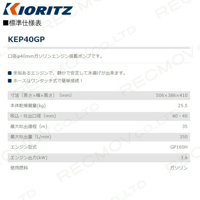 他の画像を見る 共立 KEP40GP ホンダGP160 散水 洗浄 エンジンポンプ 1.5インチ KEP40GP 共立 ポンプ 4サイクル 吐出口径 40 mm KIORITZ 価格 ¥ 69,014 税込 詳細を見る お気に入りに登録する (0)