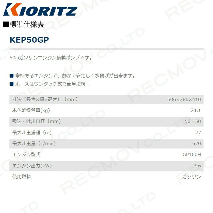 他の画像を見る 共立 KEP50GP ホンダGP160 散水 洗浄 エンジンポンプ 2インチ KEP50GP 共立 ポンプ 4サイクル 吐出口径 50 mm KIORITZ 価格 ¥ 78,104 税込 詳細を見る お気に入りに登録する (0)