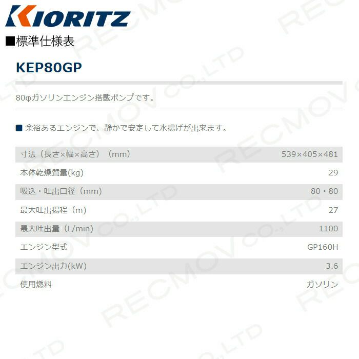 他の画像を見る 共立 KEP80GP ホンダGP160 散水 洗浄 エンジンポンプ 3インチ KEP80GP 共立 ポンプ 4サイクル 吐出口径 80 mm KIORITZ 価格 ¥ 93,222 税込 詳細を見る お気に入りに登録する (0)