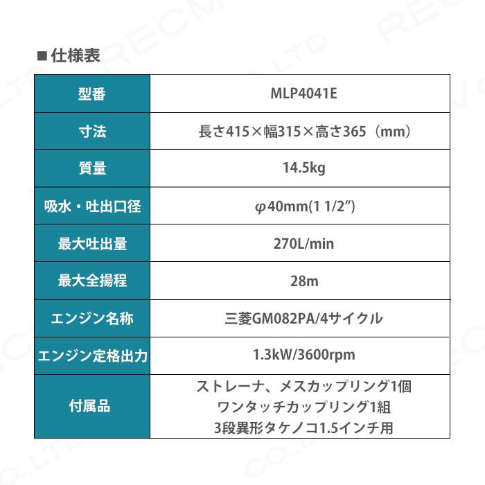 他の画像を見る 丸山 MLP8041E 三菱GB18GPN 洗浄 単体ポンプ 3インチ MLP8041E 丸山製作所 ポンプ 4サイクル 吐出口径 80 mm 丸山 価格 ¥ 93,126 税込 詳細を見る お気に入りに登録する (0)