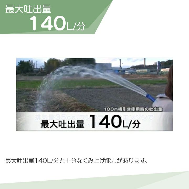 他の画像を見る 工進 清水用 田畑の散水 農機の洗浄 潅水 KOSHIN 入荷未定 工進エンジンポンプ SEV-25FG 4サイクル 4ストローク ガソリン コーシン 吸入口径25mm 吐出口径25mm 吐出量140L/分 全揚程32m 価格 ¥ 30,939 税込 在庫切れ 詳細を見る お気に入りに登録する (0)