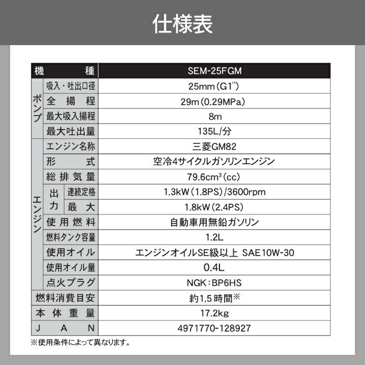 他の画像を見る 工進 清水用 農機・建機・自動車の洗浄に KOSHIN 入荷未定 工進 エンジンポンプ SEM-50GB 4サイクル 4ストローク ガソリン コーシン 吸入口径50mm 吐出口径50mm 吐出量560L/分 全揚程26m 価格 ¥ 52,394 税込 在庫切れ 詳細を見る お気に入りに登録する (0)