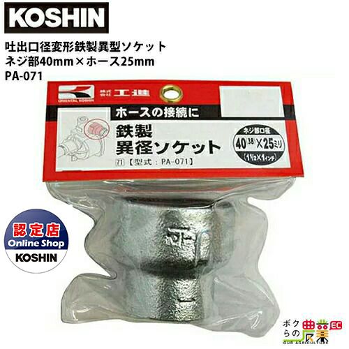他の画像を見る 代引不可 工進 KOSHIN 口径落とし 鉄製異型ソケット ネジ部40 38 mm×ホース25mm G1 1/2×G1 PA-071 価格 ¥ 2,692 税込 詳細を見る お気に入りに登録する (0)