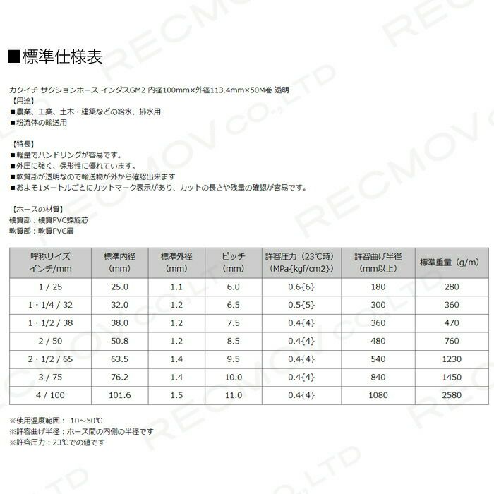 他の画像を見る サクションホース 20m 100mm サクションホース 100mm 20m 0.4MPa インダス GM2 土木 水 泥水 泥 砂 保形性 内面平滑 軽量 農業 工業 土木 建築 吸水 排水 粉流体 輸送 透明 ホース カクイチ 価格 ¥ 51,377 税込 詳細を見る お気に入りに登録する (0)