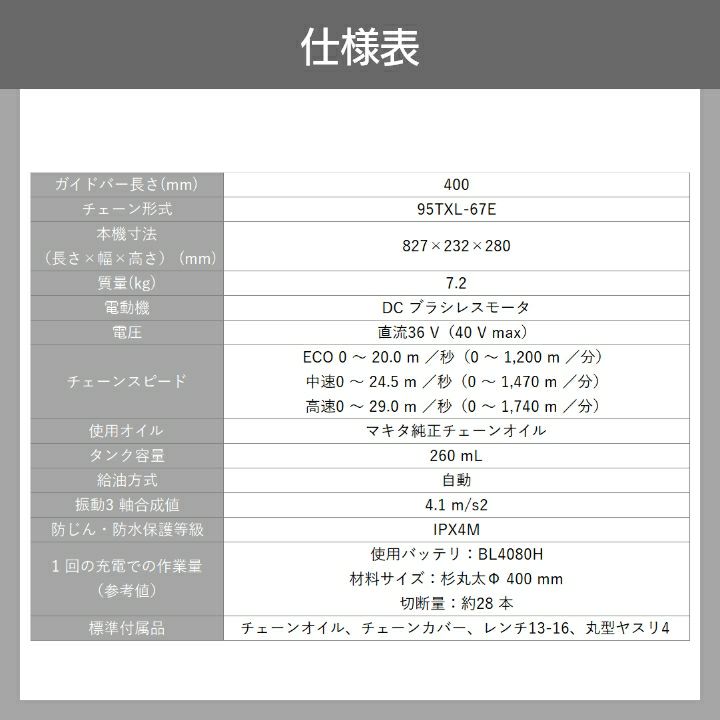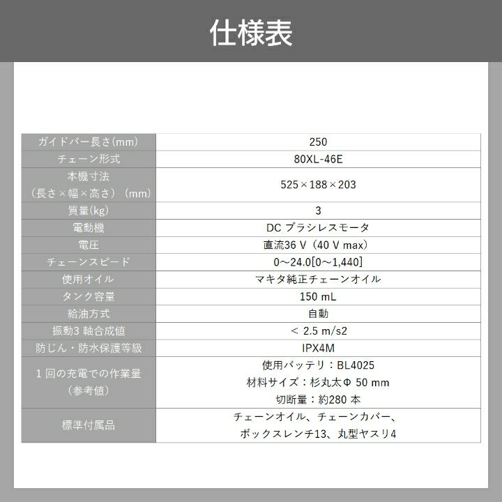 他の画像を見る マキタ チェーンソー 充電式 40Vmax チェンソー 80TXL マキタ 充電式 チェーンソー 36V 40Vmax MUC031GZR1 赤 200mm バッテリー・充電式別売 価格 ¥ 99,999 税込 在庫切れ 再入荷お知らせ お気に入りに登録する (0)
