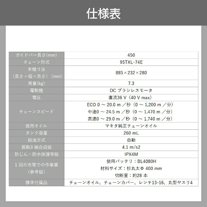 他の画像を見る マキタ チェーンソー 充電式 40Vmax チェンソー 95XTL マキタ 充電式 チェーンソー 36V 40Vmax MUC030GZR2 赤 450mm バッテリー・充電式別売 価格 ¥ 99,999 税込 在庫切れ 再入荷お知らせ お気に入りに登録する (0)