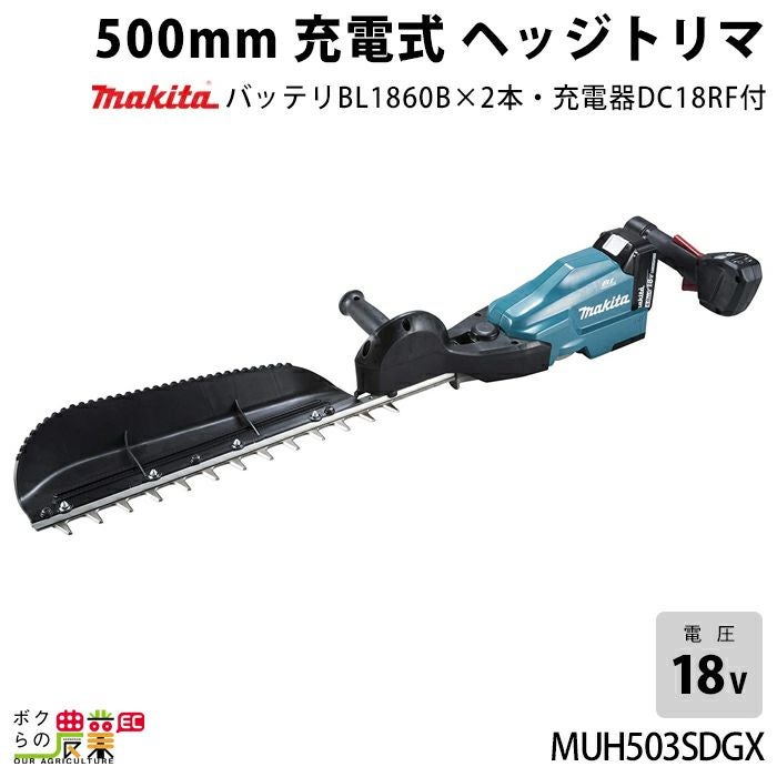マキタ 充電式 ヘッジトリマ 18V MUH503SDGX エンジン22mLクラスと同等 片刃 500mm 偏角3面研磨刃仕様 バリカン 3.4kg バッテリー・充電器付属