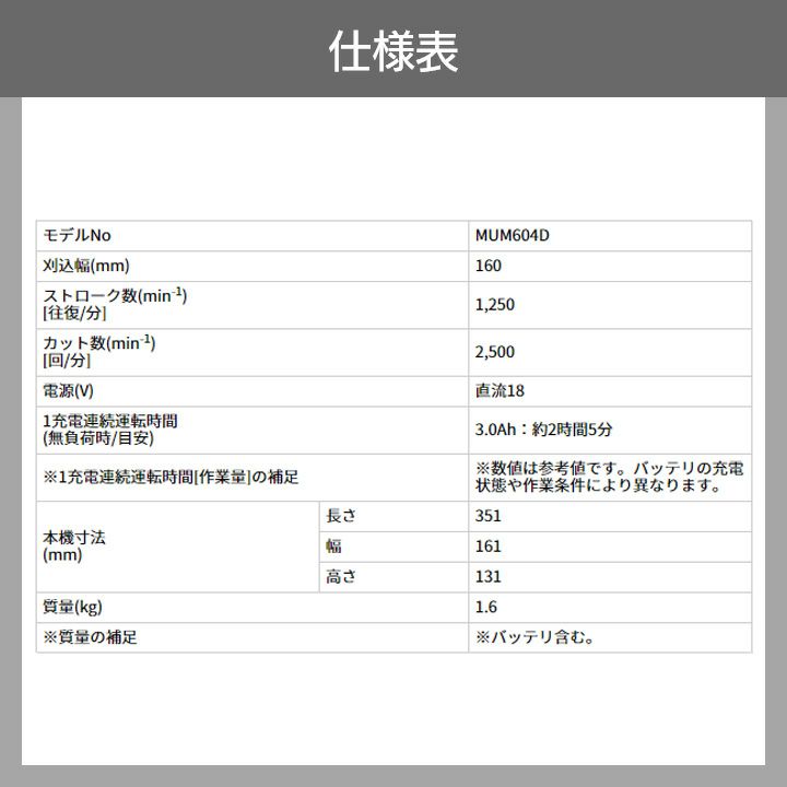 他の画像を見る 芝生バリカン マキタ 芝刈りバリカン 芝生バリカン 18V マキタ 充電式 芝生バリカン 18V MUM604DZ 刈込み幅 160mm トリマ 1.6kg 本体のみ バッテリ充電器別売 特殊コーティング刃 やにがつきにくくサビにくい バッテリー別売 価格 ¥ 10,013 税込 詳細を見る お気に入りに登録する (0)