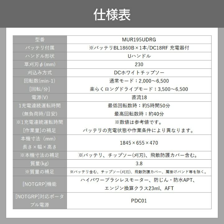 他の画像を見る マキタ 充電式 草刈機 刈払機 18V makita 電動草刈機 入荷未定 マキタ 充電式 草刈機 刈払機 18V MUR195UDRG Uハンドル バッテリ・充電器付 makita チップソー付 価格 ¥ 60,221 税込 詳細を見る お気に入りに登録する (0)
