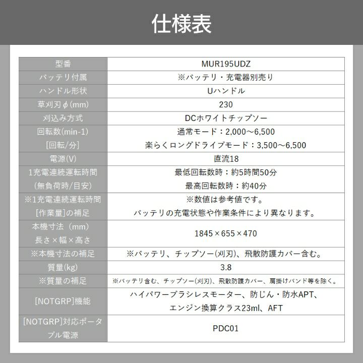 他の画像を見る マキタ 充電式 草刈機 刈払機 18V makita 電動草刈機 マキタ 充電式 草刈機 刈払機 18V MUR195WDZ 2グリップ 本体のみ バッテリ・充電器別売 チップソー付 価格 ¥ 38,432 税込 詳細を見る お気に入りに登録する (0)