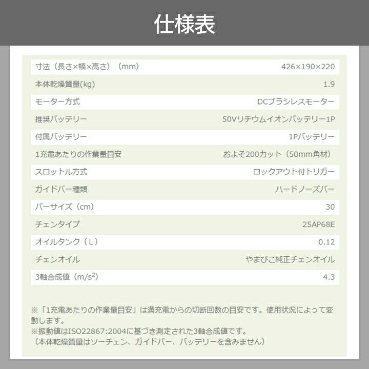 他の画像を見る 25AP 1.9kg リンク数 68コマ リヤハンドル チェーンソー エコー チェンソー バッテリープラスワンキャンペーン BCS510W-30SCG+1 充電式 50V やまびこ リアハンドル ハードノーズバー 25AP68E 1.9kg ガイドバー300mm 価格 ¥ 92,344 税込 在庫切れ 再入荷お知らせ お気に入りに登録する (0)