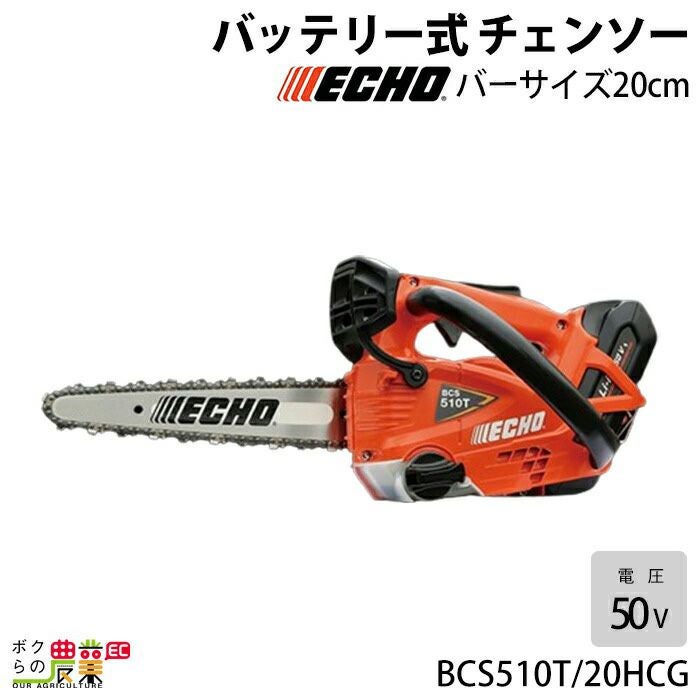 チェンソー やまびこ エコー 充電式 バッテリー 50V BCS510T/20HCG トップハンドル カービングバー 25AP-52E 1.6kg ガイドバー200mm