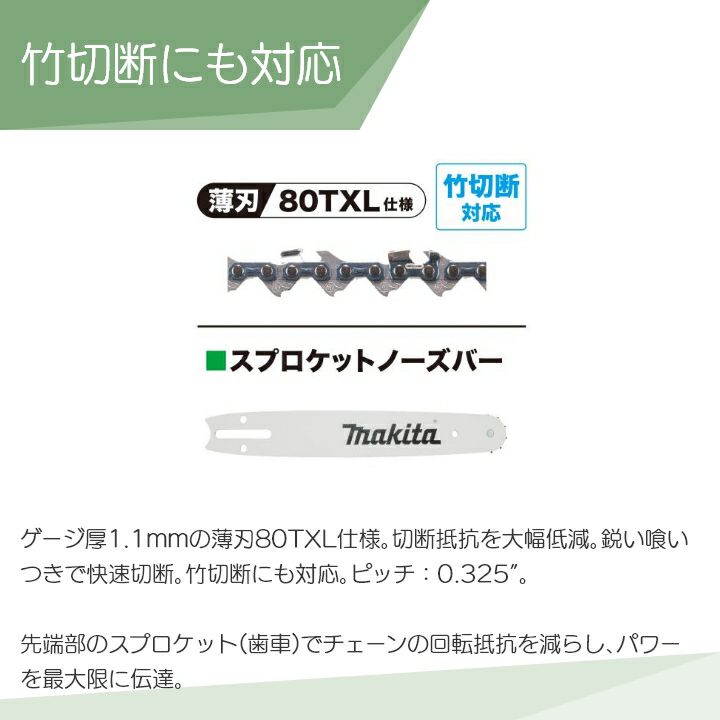 他の画像を見る マキタ チェーンソー 充電式 40Vmax 400mm マキタ 充電式 チェーンソー MUC027GZR3 40Vmax 本体のみ バッテリー・充電器別売 価格 ¥ 53,290 税込 カートに入れる お気に入りに登録する (0)