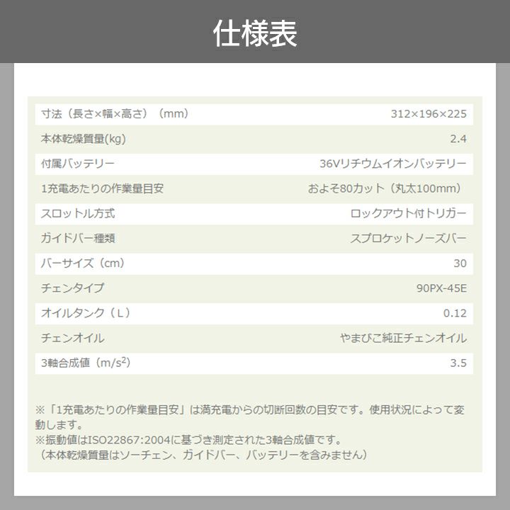 他の画像を見る 90PX 2.9kg リンク数 45コマ リヤハンドル チェーンソー チェンソー やまびこ エコー 充電式 バッテリー 36V BCS310 リアハンドル 2.9kg 本体のみ バッテリ・充電器なし 価格 ¥ 27,220 税込 詳細を見る お気に入りに登録する (0)