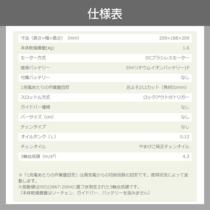 他の画像を見る 25AP 1.6kg リンク数 52コマ トップハンドル チェーンソー チェンソー やまびこ エコー 充電式 バッテリー 50V BCS510T/20HCG トップハンドル カービングバー 25AP-52E 1.6kg ガイドバー200mm 価格 ¥ 69,989 税込 詳細を見る お気に入りに登録する (0)