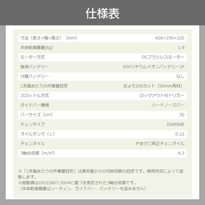 他の画像を見る 25AP 1.9kg リンク数 68コマ リヤハンドル チェーンソー チェンソー やまびこ エコー 充電式 バッテリー 50V BCS510W-3025 リアハンドル 25AP68E 1.9kg 本体のみ バッテリ・充電器なし ガイドバー300mm 価格 ¥ 41,107 税込 詳細を見る お気に入りに登録する (0)