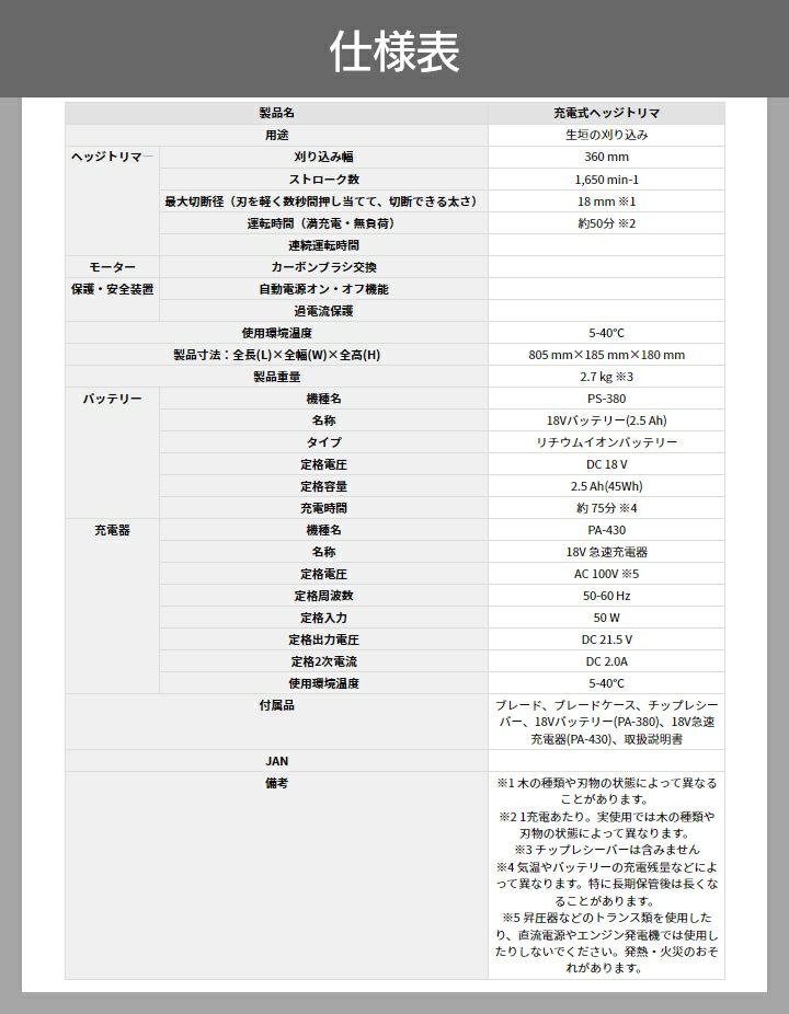 他の画像を見る ヘッジトリマー 充電式 工進 PHT-1825 ヘッジトリマ 工進 充電式 ヘッジトリマ PHT-1825 ヘッジトリマー 18V 360mm バッテリー・充電器付き 両刃 2.7kg 価格 ¥ 27,800 税込 詳細を見る お気に入りに登録する (0)