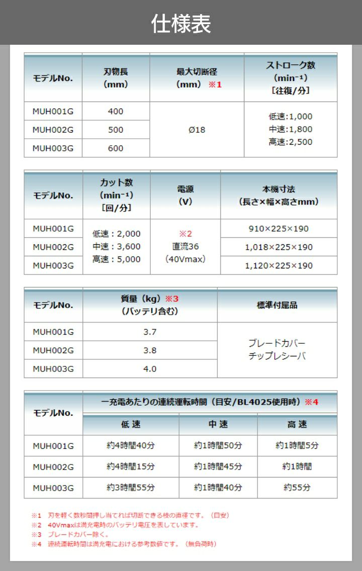 他の画像を見る ヘッジトリマー 充電式 マキタ MUH003GZ ヘッジトリマ マキタ 充電式 ヘッジトリマ MUH003GZ ヘッジトリマー 40Vmax 600mm バッテリー・充電器別売 両刃 4kg バッテリー別売 価格 ¥ 40,290 税込 詳細を見る お気に入りに登録する (0)