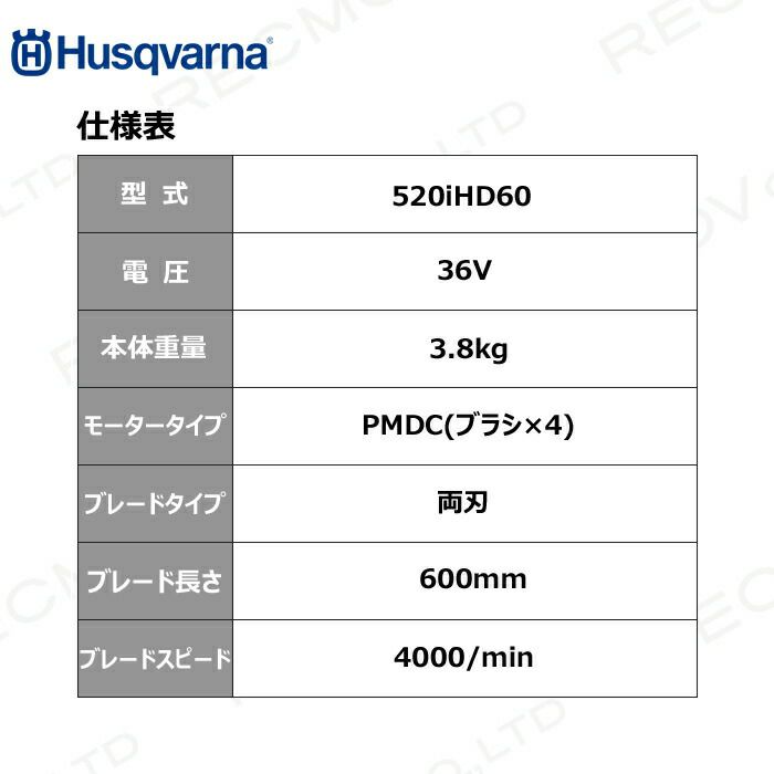 他の画像を見る ヘッジトリマ バリカン 低騒音 IPX4 防水性能国際規格 ハスクバーナ ヘッジトリマ 充電式 バッテリー 36V 両刃 600mm 全天候型 520iHD60 967915605 3.8kg 本体のみ バッテリ充電器別売 価格 ¥ 57,385 税込 詳細を見る お気に入りに登録する (0)