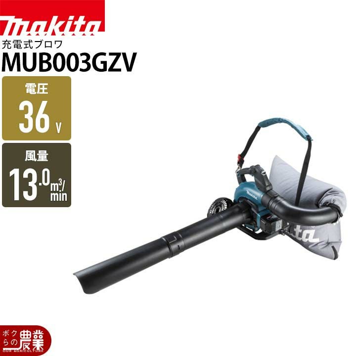 入荷未定 マキタ ブロワ MUB003GZV 36V 40Vmax 充電式 肩掛け式 最大風量 13.8m3/min 6.1kg バッテリー・充電式別売 バキュームキット付