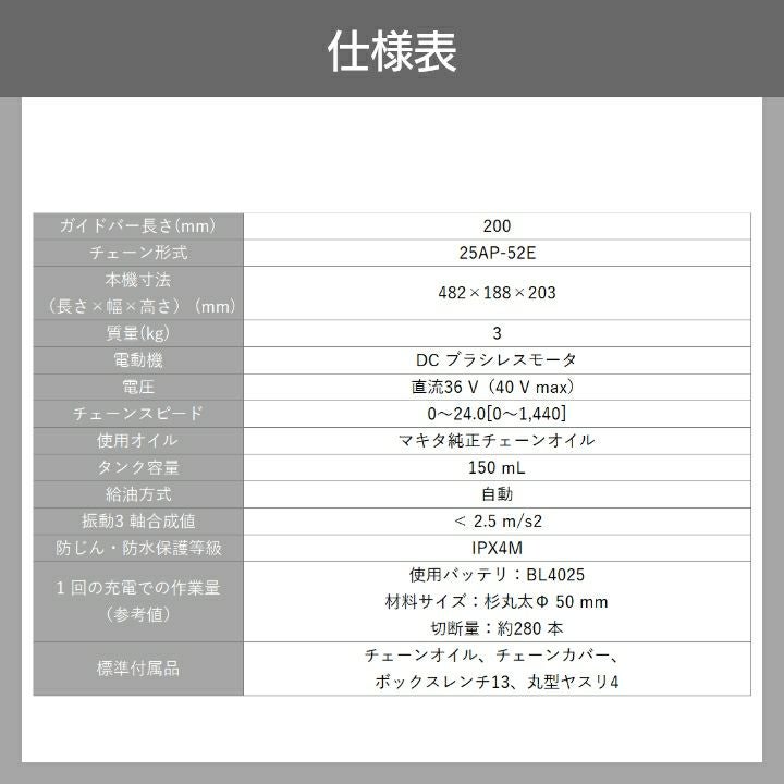 他の画像を見る マキタ チェーンソー 充電式 40Vmax チェンソー 25AP マキタ 充電式 チェーンソー 36V 40Vmax MUC031GZR4 赤 200mm バッテリー・充電式別売 価格 ¥ 43,912 税込 カートに入れる お気に入りに登録する (0)