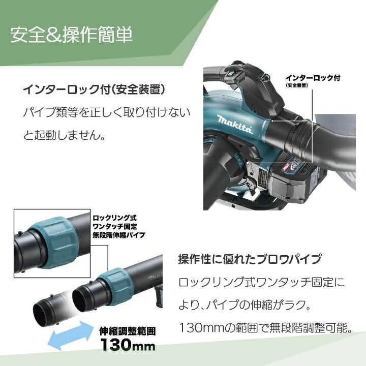 他の画像を見る マキタ 充電式 ブロワー 充電式 ブロアー 40Vmax マキタ ブロワ MUB003GZ 36V 40Vmax 充電式 肩掛け式 最大風量 13.8m3/min 5.0kg バッテリー・充電式別売 バキュームキット別売 価格 ¥ 44,132 税込 カートに入れる お気に入りに登録する (0)