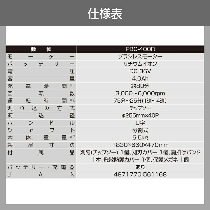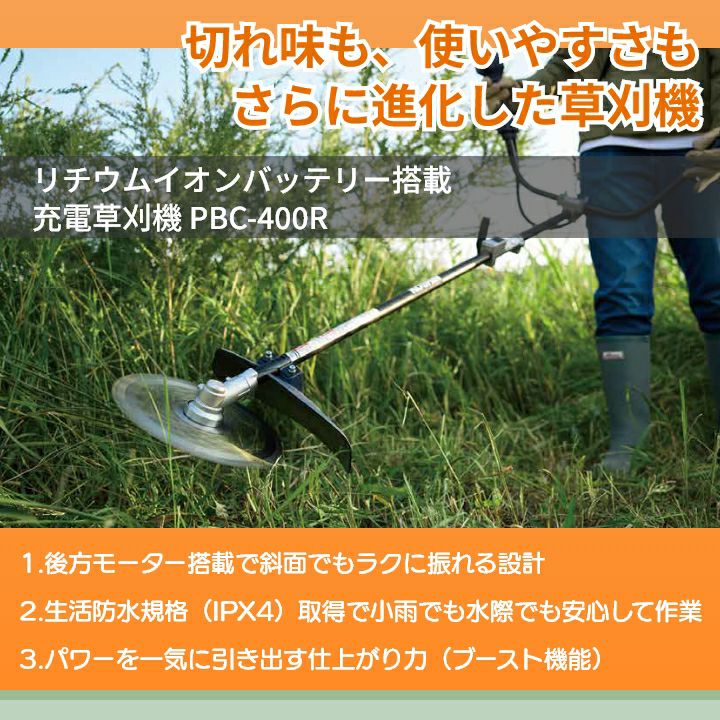 他の画像を見る 草刈機 刈払機 充電式 肩掛式 4.0Ah U字ハンドル 255mm ナイロンカッター対応 分割式シャフト KOSHIN 工進 充電式 草刈機 充電式 PBC-400R 36V バッテリー Uハンドル 肩掛け KOSHIN 5.5kg バッテリー・充電器付属 価格 ¥ 49,800 税込 在庫切れ 再入荷お知らせ お気に入りに登録する (0)
