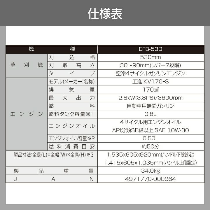 他の画像を見る 草刈機 芝刈機 刈込幅530mm 4ストロークエンジン ガソリン 2.8kW 34kg 工進 草刈機 エンジン 4サイクル EFB-53D 170cc 手押式 手押し式 エンジン草刈機 芝刈機 価格 ¥ 69,800 税込 在庫切れ 再入荷お知らせ お気に入りに登録する (0)