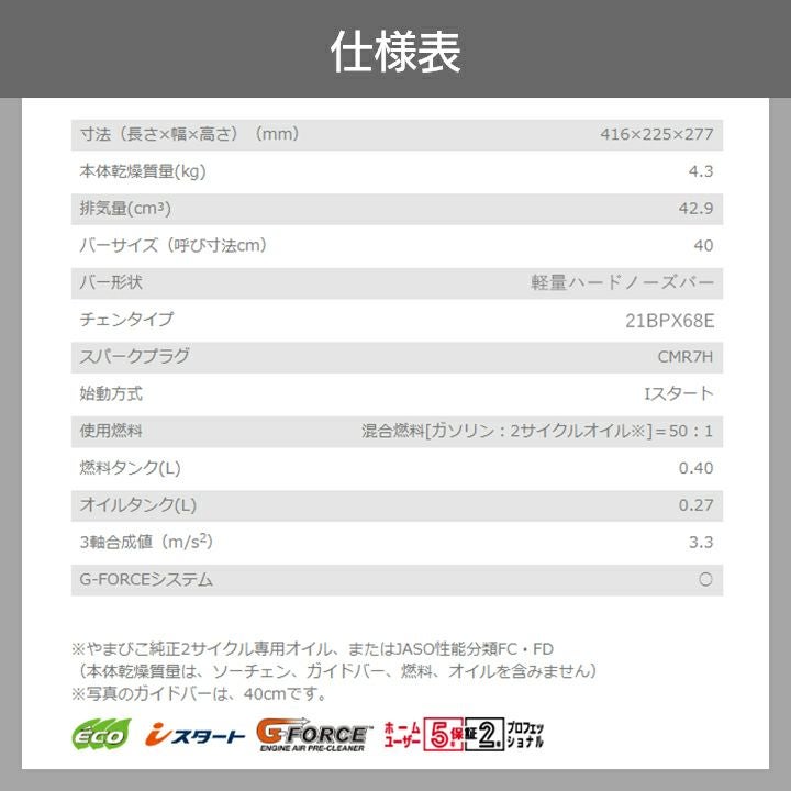 他の画像を見る 共立 チェーンソー CS43RS/40H21 エンジン 40cm 21BPX リヤハンドル KIORITZ 共立 チェーンソー エンジン式 CS43RS/40H21 40cm 排気量42.9cc リアハンドル 軽量ハードノーズバー 4.3kg やまびこ 価格 ¥ 119,922 税込 詳細を見る お気に入りに登録する (0)
