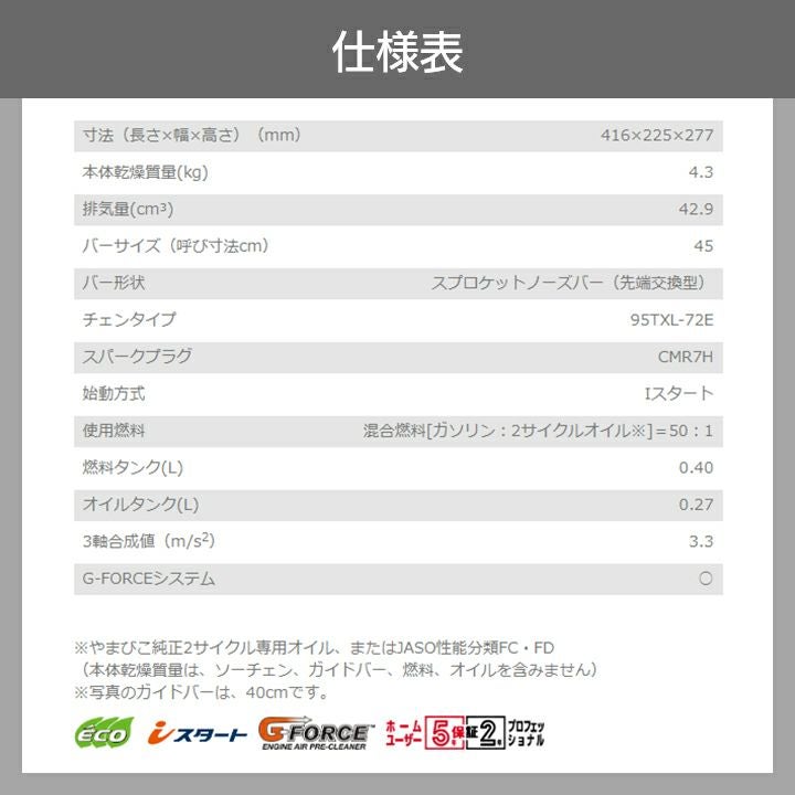 他の画像を見る 共立 チェーンソー CS43RS/45R95 エンジン 45cm 95TXL 4.3kg リヤハンドル KIORITZ 共立 チェーンソー エンジン式 CS43RS/45R95 45cm 排気量42.9cc リアハンドル スプロケットノーズバー 4.3kg やまびこ 価格 ¥ 122,008 税込 詳細を見る お気に入りに登録する (0)