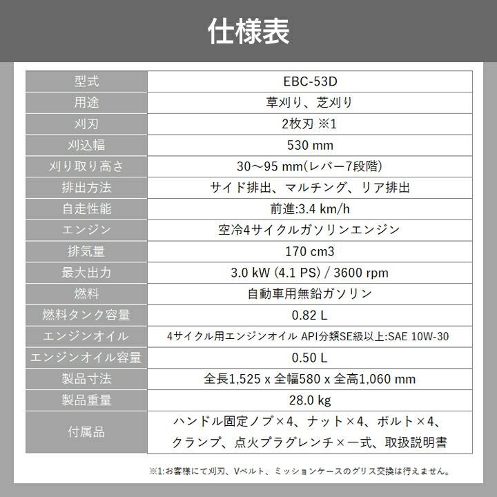 他の画像を見る 草刈機 エンジン 工進 EBC-53D 自走 4ストローク KOSHIN 入荷未定 工進 草刈機 エンジン 4サイクル EBC53D 170cc 自走式 エンジン式 自走草刈機 価格 ¥ 69,800 税込 在庫切れ 詳細を見る お気に入りに登録する (0)