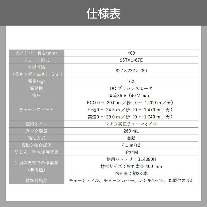 他の画像を見る マキタ チェーンソー 充電式 40Vmax チェンソー 95XTL 入荷未定 マキタ 充電式 チェーンソー 36V 40Vmax MUC030GZR3 赤 500mm バッテリー・充電式別売 価格 ¥ 86,746 税込 在庫切れ 再入荷お知らせ お気に入りに登録する (0)