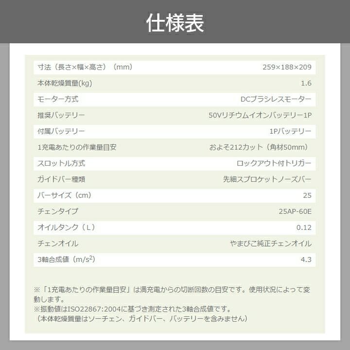 他の画像を見る 25AP 1.6kg リンク数 60コマ トップハンドル チェーンソー エコー チェンソー バッテリープラスワンキャンペーン BCS510T/25SCG+1 充電式 50V やまびこ トップハンドル スプロケットノーズバー 25AP-60E 1.6kg ガイドバー250mm 価格 ¥ 84,311 税込 在庫切れ 再入荷お知らせ お気に入りに登録する (0)