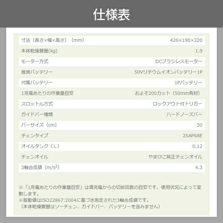 他の画像を見る 25AP 1.9kg リンク数 68コマ リヤハンドル チェーンソー エコー チェンソー バッテリープラスワンキャンペーン BCS510W-30SCG+1 充電式 50V やまびこ リアハンドル ハードノーズバー 25AP68E 1.9kg ガイドバー300mm 価格 ¥ 92,344 税込 在庫切れ 再入荷お知らせ お気に入りに登録する (0)