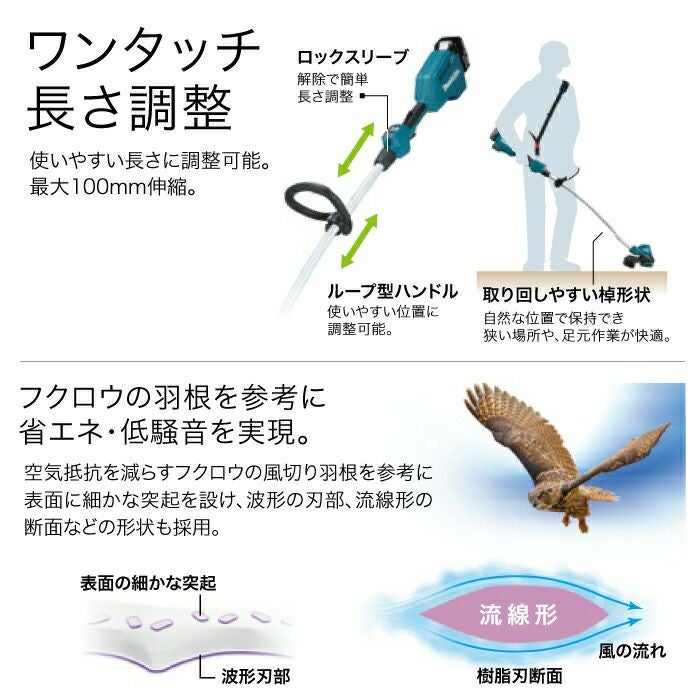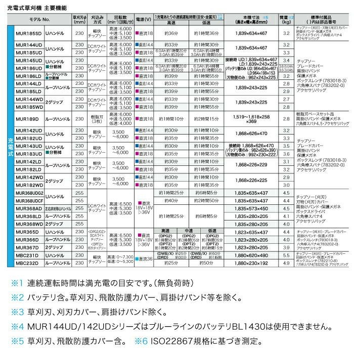 他の画像を見る 草刈機 充電式 刈払機 一般家庭から緑地管理まで マキタ 充電式 草刈機 18V + 18V 36V MUR368ADG2 エンジン25ccクラスと同様 Uハンドル 左右非対称 刈払機 4.5kg バッテリー・充電器付属 バッテリー付き 価格 ¥ 66,310 税込 詳細を見る お気に入りに登録する (0)