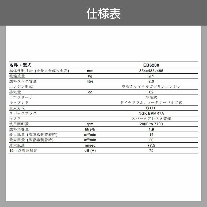 他の画像を見る EB6200 970723101 ゼノア 62cc ゼノア ブロワ EB6200 970723101 排気量 62cc エンジン 背負い 最大風量 14m3/min 9.1kg ブロワー ブロアー 価格 ¥ 81,422 税込 在庫切れ 再入荷お知らせ お気に入りに登録する (0)