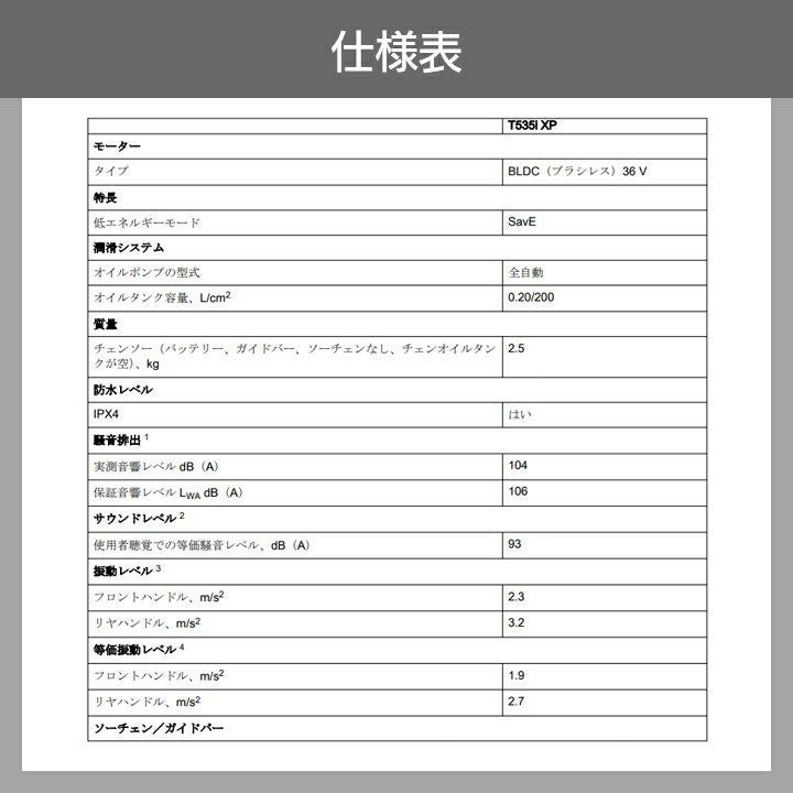 他の画像を見る ハスクバーナ リンク数 60コマ トップハンドル チェーンソー チェンソー 充電式 36V ハスクバーナ トップハンドル T535iXP SP11G 10RT SP11G 2.4kg ガイドバー250mm 10インチ 970717410 バッテリー・充電器別売 価格 ¥ 59,171 税込 カートに入れる お気に入りに登録する (0)